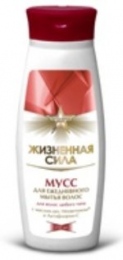 Действие: Мусс для ежедневного мытья волос с маслом ши, Неовитином® и Актофлором С - «Жизненная сила - инновационное средство для ухода за волосами, требующими частого мытья. Не заменим при повышенной секреции сальных желёз и при динамичном образе жизни (регулярное посещение бассейнов и фитнес- залов). Не требует кондиционера. Мусс сочетает в себе свойства шампуня и маски для волос. Но в отличие от обычного шампуня, содержит не агрессивные ПАВы, которые вымывают питательные вещества из волосяного стержня, высушивают волосы, смывают краску, а лишь малую толику безопасных сверхмягких ПАВов, стабилизирующих косметическое средство. Этим объясняется небольшое количество пены, образующееся в процессе мытья волос.