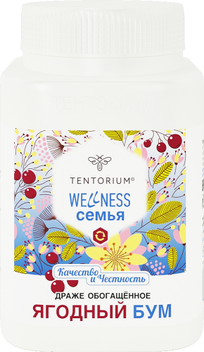 Ценнейшие природные компоненты в составе драже богаты витаминами, микроэлементами, органическими кислотами, фитонцидами и флавоноидными соединениями. <<Зимние>> ягоды повышают защитные свойства организма, оказывают бактерицидное действие. Ягоды брусники, клюквы, черноплодной рябины обработаны и высушены по специальной технологии, позволяющей максимально сохранить концентрацию полезных веществ. Естественный кислый вкус ягод в драже компенсируется повышенным содержанием мёда, который делает продукт мягким при разжёвывании и вкусным, при этом проявляя иммуностимулирующее действие. <<Ягодный бум>> объединил полезные свойства <<зимних>> ягод, мёда и прополиса, многократно усилив их витаминным комплексом, поэтому содержание жизненно важных витаминов - В1, В2, В6, В12, С, D, Е и др. - в драже доведено до физиологически значимых показателей.