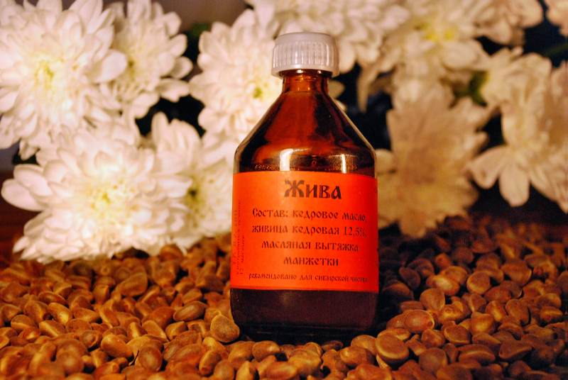 Cостав: масло кедровое, отжатое из сырого ядра на деревянном прессе, льняное масло, маслянная вытяжка Манжетки, живица кедровая 12,5%.