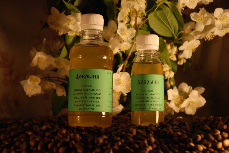 Состав: живица кедровая 15%, масло кедровое, отжатое из сырого ядра на деревянном прессе, масляная вытяжка зверобоя.