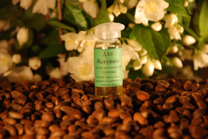 Состав: масло кедровое, отжатое из сырого ядра на деревянном прессе и масло репейное, живица10%.