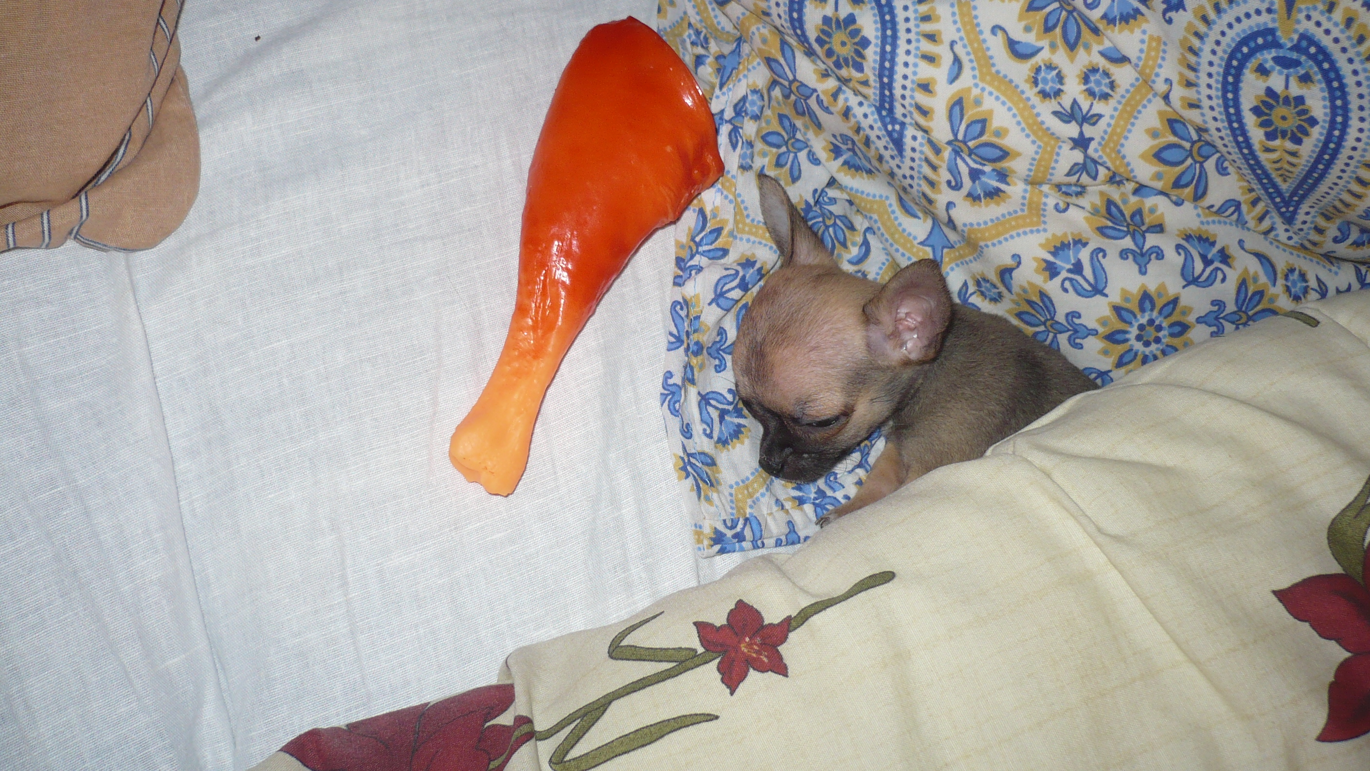 п.с. косточка пока ему не по зубам)))))она ж больше его))))