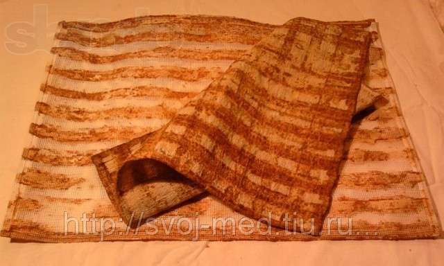 При кожных заболеваниях холстик прикладывают на 1-3 часа, а при первом использовании - несколько минут, используя прокладку в виде слоя марли.